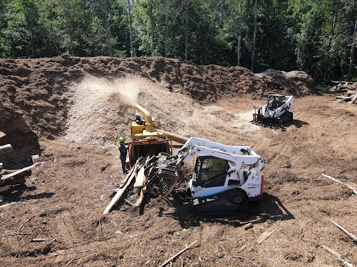 With the help of Bobcat loaders and a wood chipper, the team successfully removed the trees and brush cluttering the client's lot. Their machinery operating skills and site preparation experience helped them process a large amount of wood quickly.