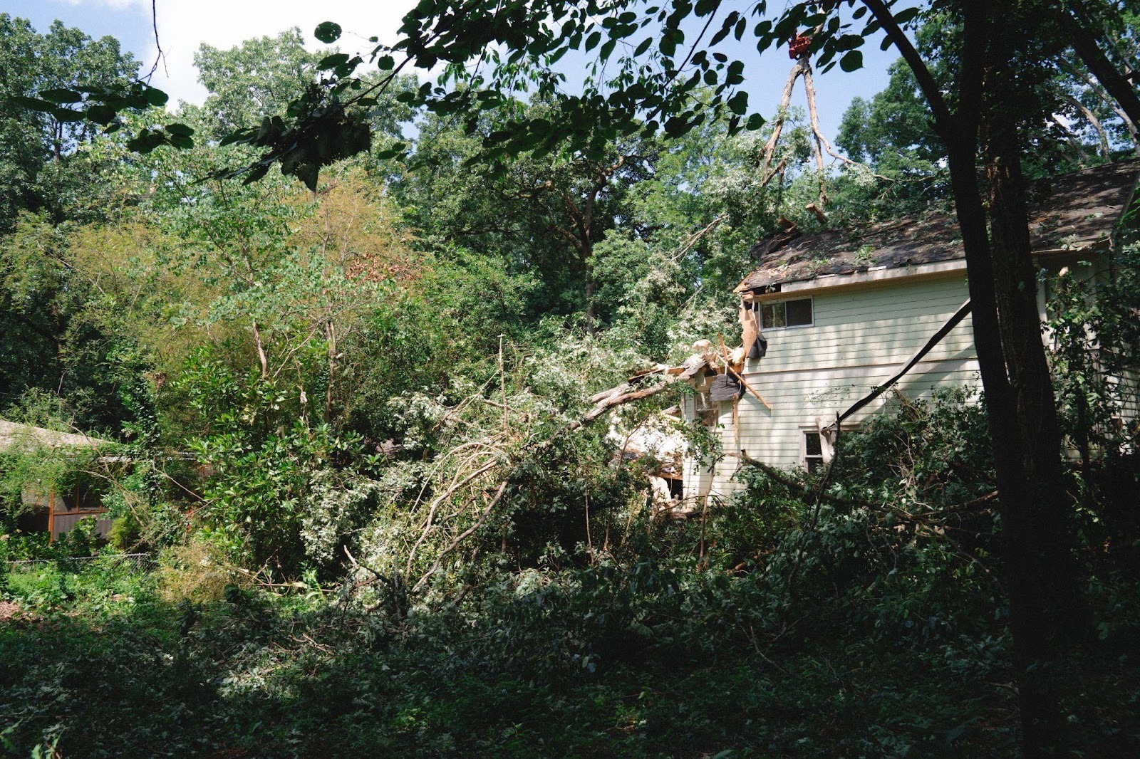 The Delicate Process of Removing a Fallen Tree From an Already Damaged Roof